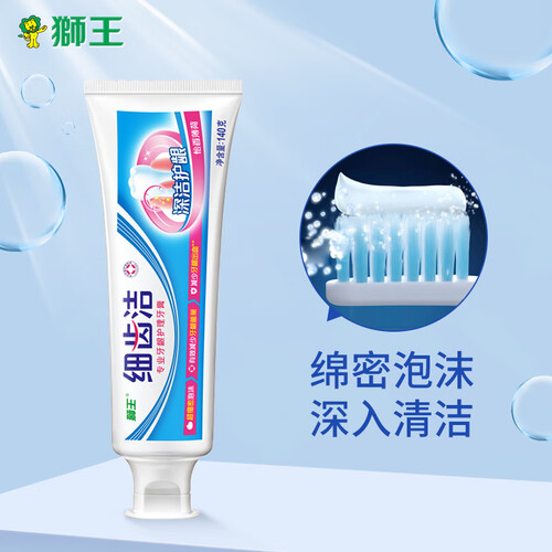 绵密的泡沫可以深入齿间清洁,细小角落也不放过。特含细护龈因子,能有效缓解牙龈肿痛,清爽护龈,同时还能保护口腔健康。