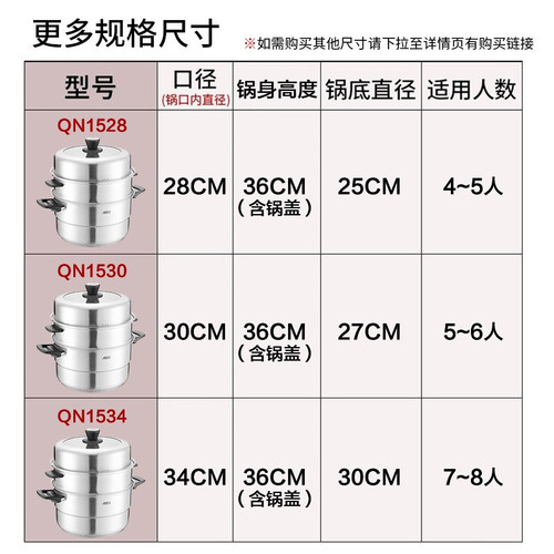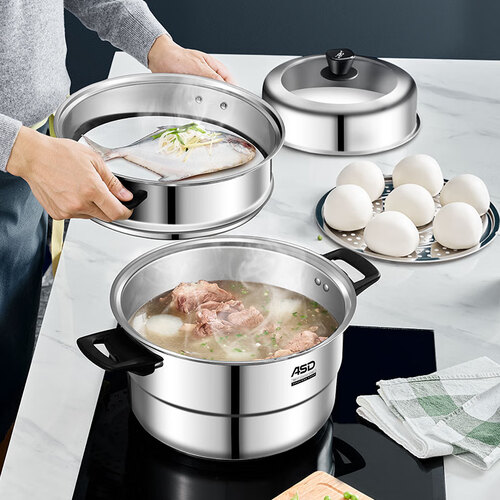 严选食品级304不锈钢制造,使用更加安全放心,锅身蒸格采用可叠放设计,为您节省更多厨房空间,方便收纳。