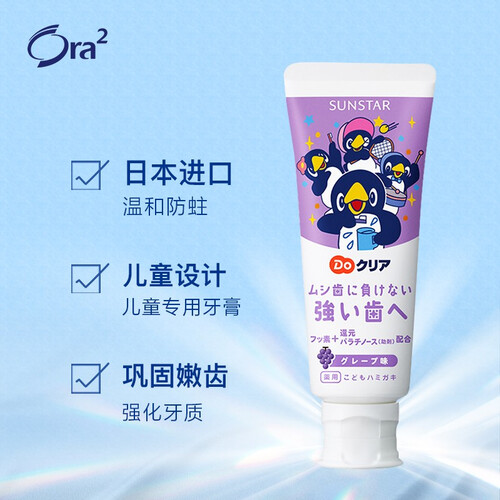 为儿童专门设计,温和巩固娇嫩牙齿,增强牙齿质量,防止蛀牙的发生。天然缤纷果味,让宝宝从此爱上刷牙。