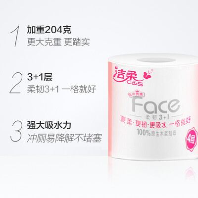 加厚丨想要每次的擦拭都手感十足?洁柔卷纸加入4层厚度设计,让每一节用纸都安全感十足。加上湿水柔韧不易掉屑,使用更有品质。