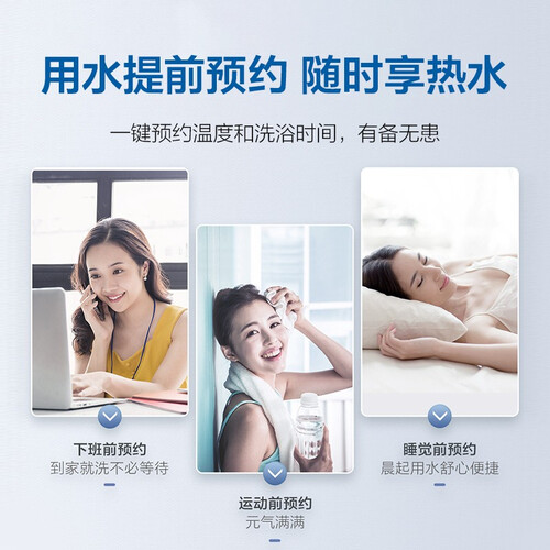 智能预约|先进的智能预约技术让我们洗澡无需再等待!我们只需要提前预约好洗浴的时间和温度,热水器就能够提前加热,让热水一步到位,小卫浴也不将就!