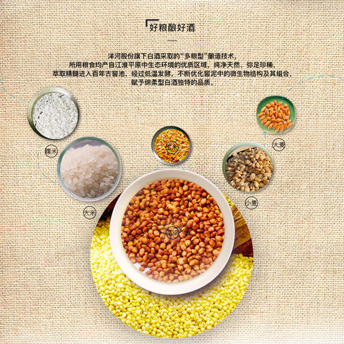 洋河秉承天人合一的酿造工艺,采取“多粮”酿造技术,高温制曲、低温入窖,优化了窖内微生物结构和组合,让酒味更佳。