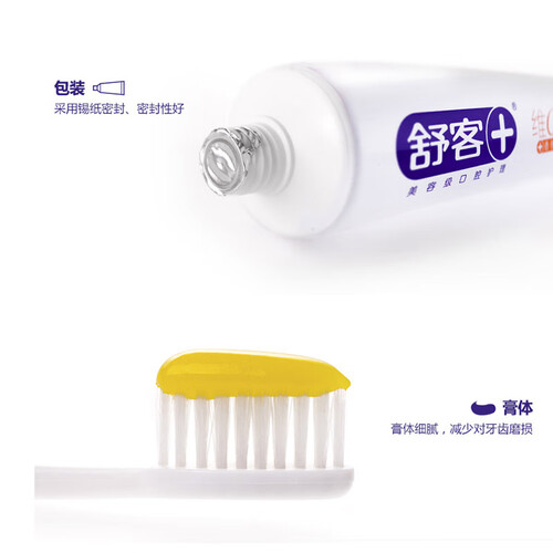 该款牙膏中添加了丰富的维生素C成分,能够对牙龈起到养护作用。细腻的膏体,则可避免在清洁过程中对牙齿造成不必要的磨损。