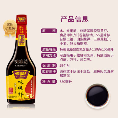 秉承三步取鲜工艺制作而成,使得酱油鲜味更加突出,口感正宗。脂肪含量为零,不会给身体造成负担,全家可放心食用。