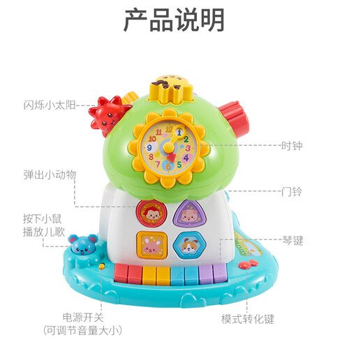 形状匹配训练,有助于训练手眼协调能力,并提认知力。内置动感的音乐节奏,锻炼宝宝乐感,激发宝宝玩耍兴趣。