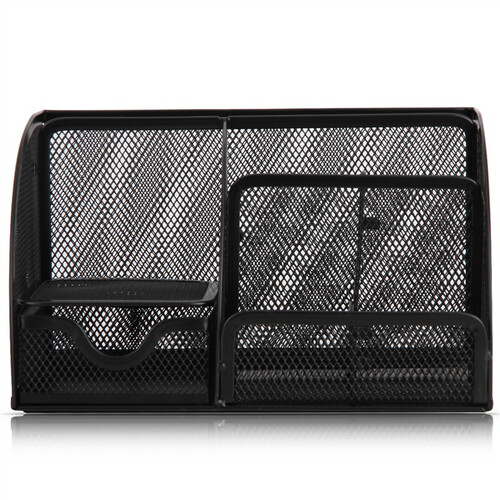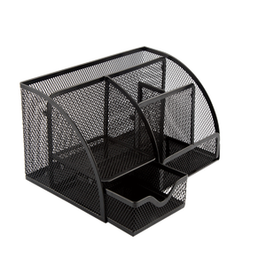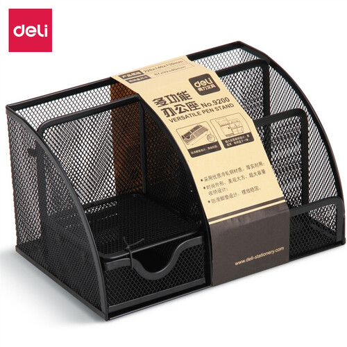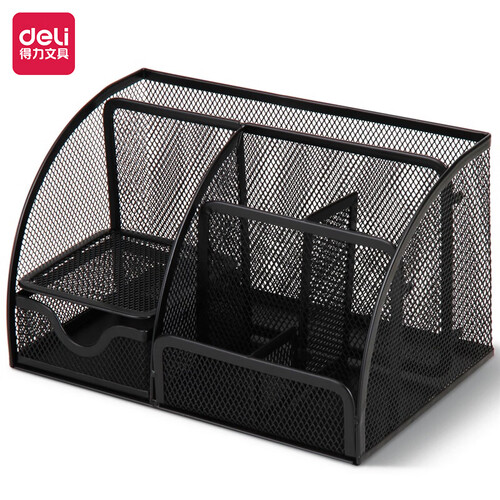 得力 金属网多格收纳笔筒