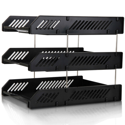 这款文件架采用了镂空的设计,不容易积灰,三层的造型,还能节省空间。