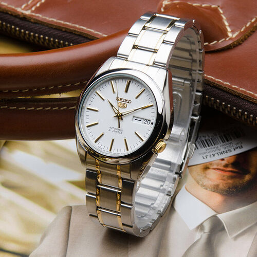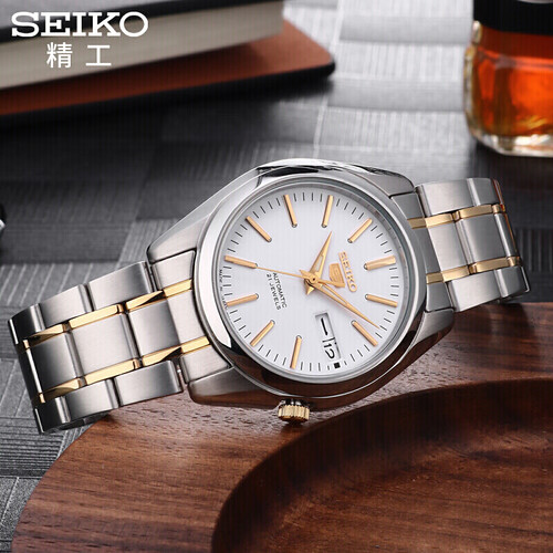 精工 间金白盘钢带男表