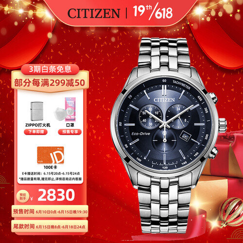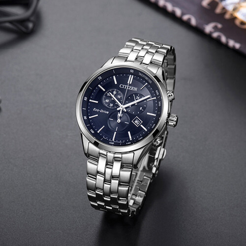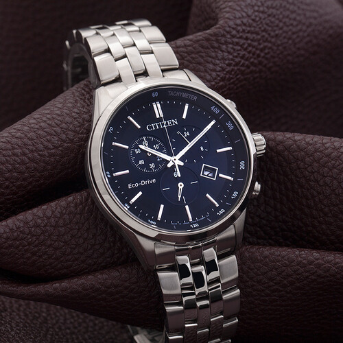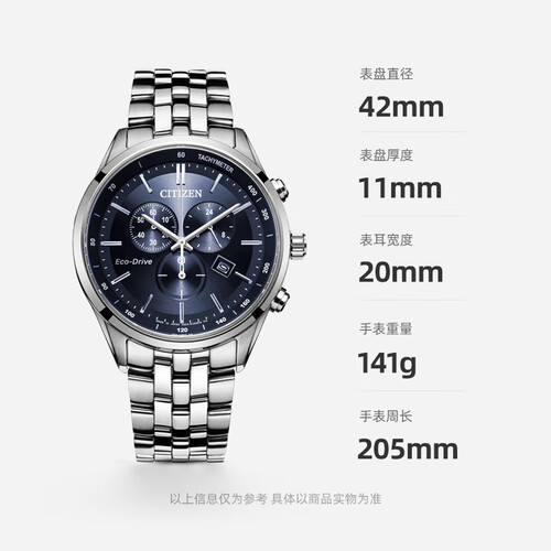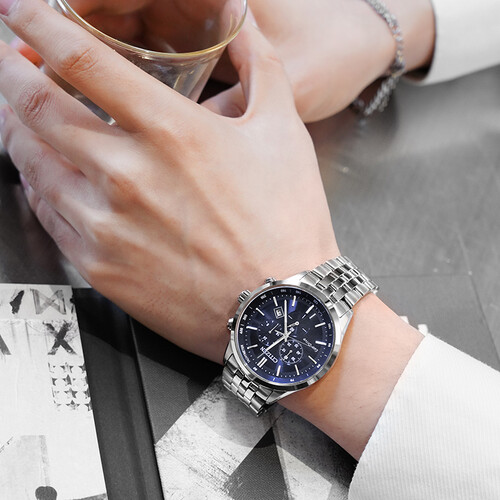 西铁城大蓝盘三眼钢带表