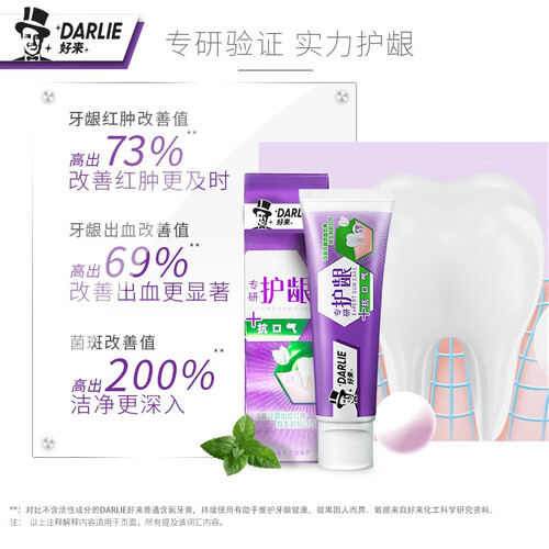品牌采用了针对性护龈因子配方,能够持续有效的维护牙龈健康。活性柠檬酸锌成分的添加,改善出血红肿,长效对抗口气。