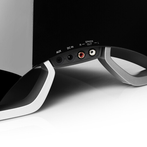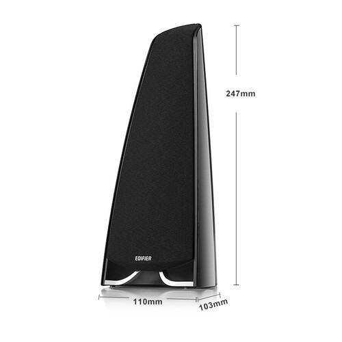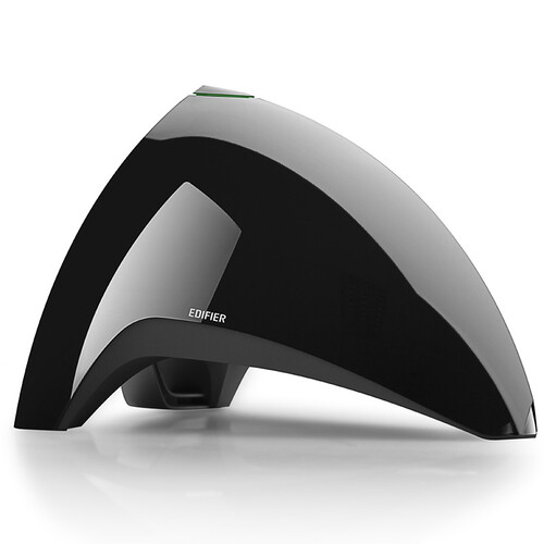 这款产品的造型较为别致,中间隆起的音响主体可凭借不规则造型较少驻波干扰,两侧的音响挺拔直立,不会影响高亢锐利的高音发出。