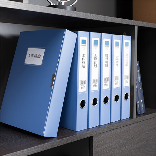 正面和侧面均设有标签,可抽取书写,方便文件分类存放,翻找不费时;商务蓝色,搭配办公环境更为和谐。