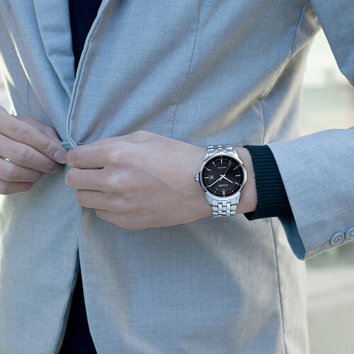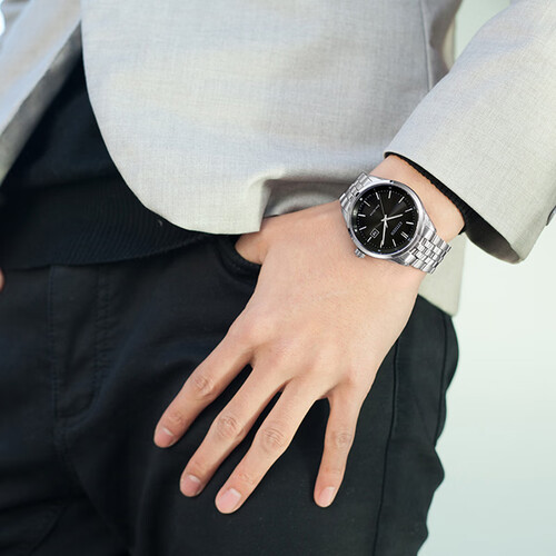 小巧的方形日历窗口简洁大气,还可以增强表盘的立体层次感;精钢质地的表带简约抗氧化,而且具有金属质感。