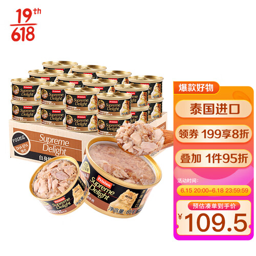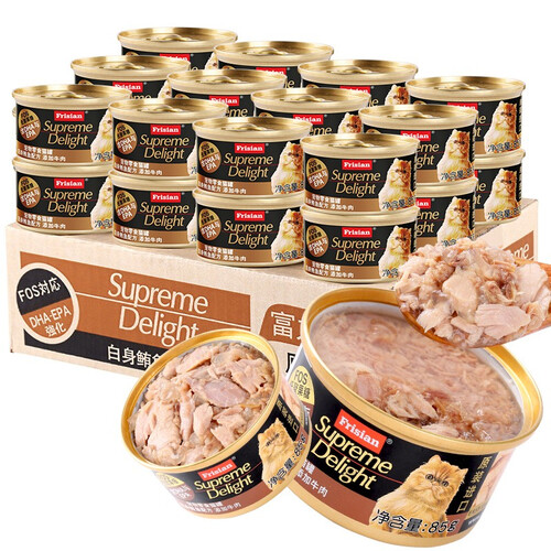 选用优质白身鲔鱼搭配鲜嫩牛肉制作,富含多种营养同时适口性更佳。特添加益生元和维生素E,能够调节肠道菌群,增强爱宠免疫。