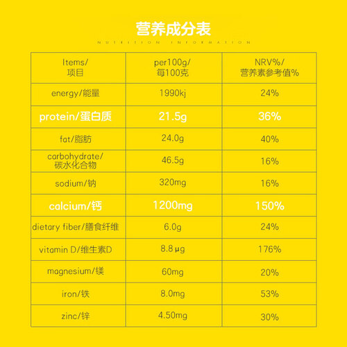 贴心人性化的小袋包装,可以有效避免与空气接触,避免回潮或滋生细菌。同时高钙的含量,可以满足人体对钙质的需求。