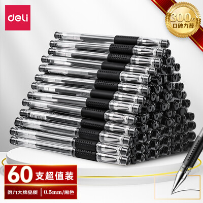 得力这款中性笔的笔杆采用ABS搭配AS塑料制成,拥有高强度和高透光性,剩余油墨一目了然,方便及时更换笔芯。