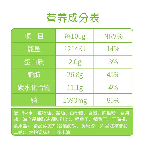 采用食醋、辣椒油、植物油调制而成,满足中国人的味蕾,整体咸辣适宜,清新又爽口。有着多重的吃法,大拌菜在家就可以搞定。