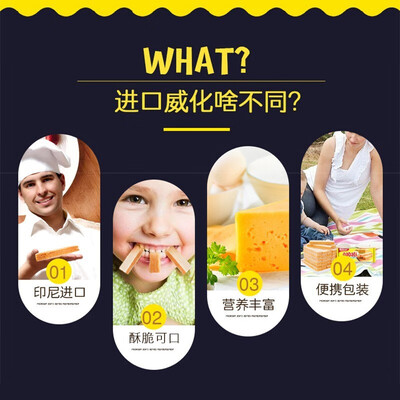 印尼进口的威化饼干,饱含奶酪和天然乳清蛋白,富含丰富的营养。立体双层夹心的设计,也让饼干的口感更浓郁,脆而不碎。