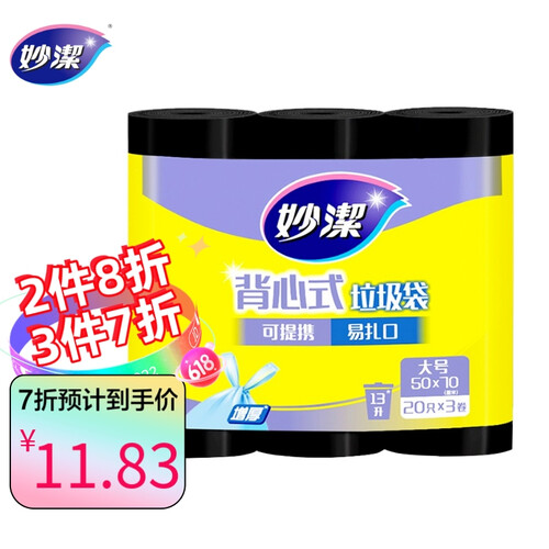 妙洁 背心式加厚垃圾袋