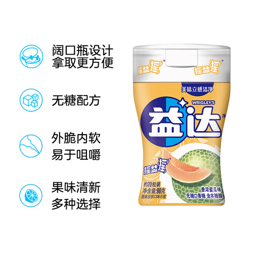 采用新配方,木糖醇把关,清爽的薄荷香味配合香浓的蜜瓜,带给您双重洁净感;玲珑小巧的外观携带更方便,随时为您保持清新口气。