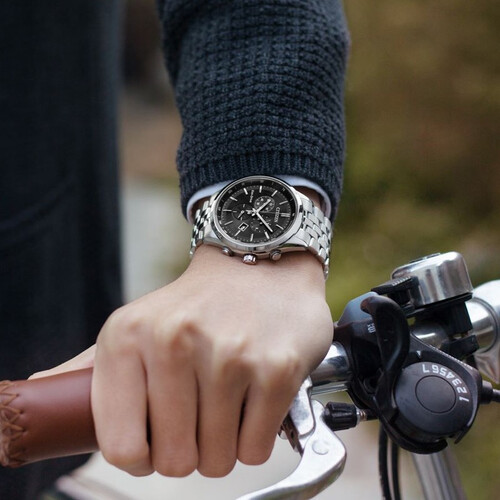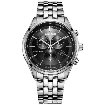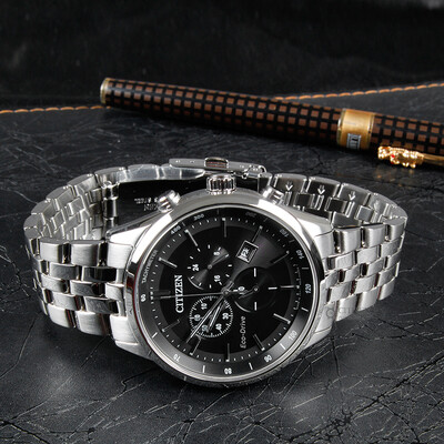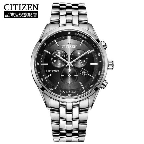 西铁城 光动能大盘黑色男表