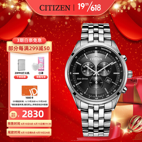 西铁城 光动能双按式商务男表
