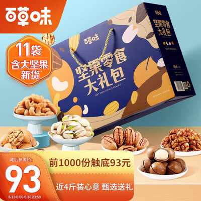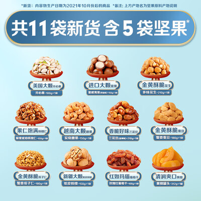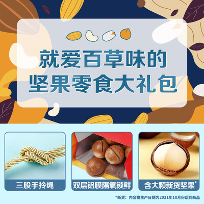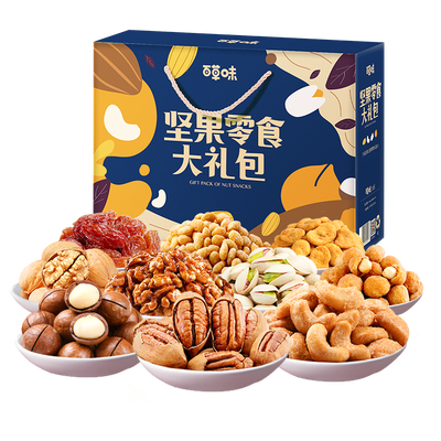 混合口味 | 这款百草味坚果大礼包外观很喜庆,送人很合适,它里面有五款品质坚果和四款人气炒货,果仁饱满干净,平时带到公司吃很好!