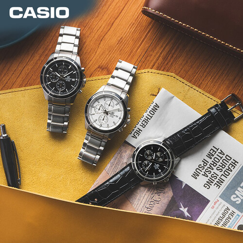 卡西欧 三盘六指针商务石英表