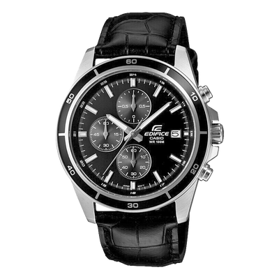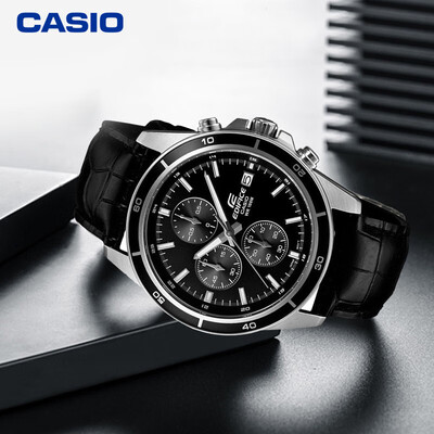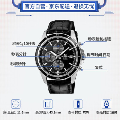 采用流行经典三盘六指针设计,时尚大气,配以黑色表盘,彰显高质感。黑色的皮革表带佩戴舒适,搭配金属质感针扣,更具细节品质。