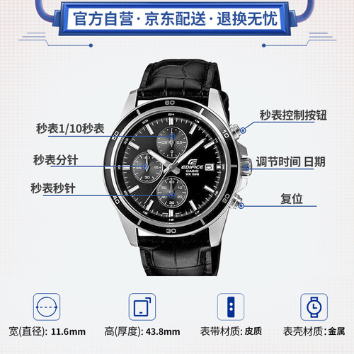 卡西欧 三盘六指针商务石英表