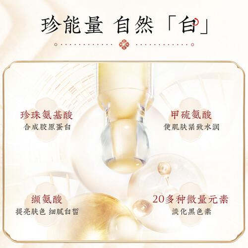 纯珍珠微米研磨,细腻温和,美肌无负担。富含20多种微量元素,温润养护力,淡化沉淀色素。美白秘籍,稳站发光C位。