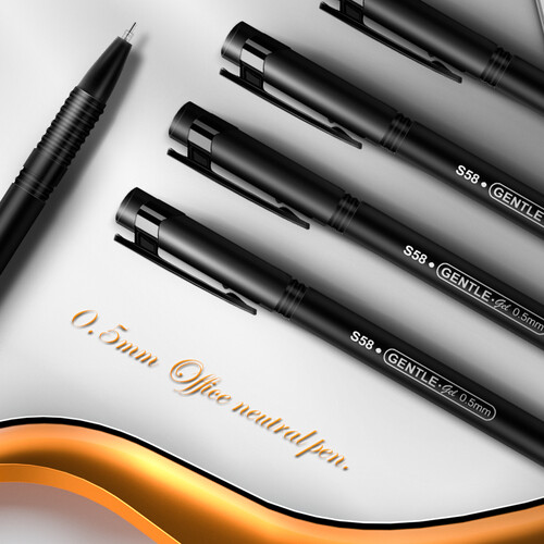 笔握处设有凹槽带来舒适的握感,笔杆采用ABS塑料制成,高强度韧性好;透明视窗可以直接观察到油墨不足,方便及时更换。