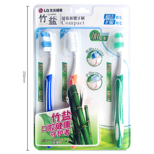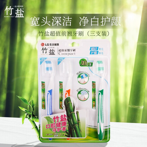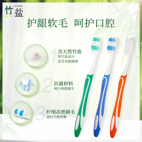 竹盐 柔细软毛宽头设计牙刷