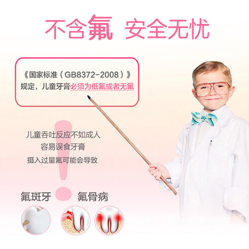 食品级原材料,安全可吞咽,天然配方,不含有害成分,无糖无防腐剂,无传统成分钙料磨损剂,呵护宝宝牙齿和牙龈健康。