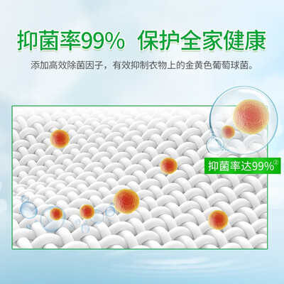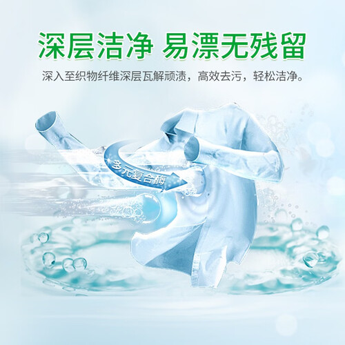 含有柠檬酸和植物油脂皂粒及绿色亲肤粒子,呵护娇嫩肌肤及衣物纤维;多元复合酶成分可生物分解污渍,强力去污,衣物洁净如新。