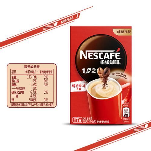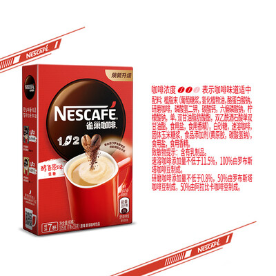 经典的雀巢1+2咖啡,奶香味和甜度适中,均衡的配比,使口感更香醇,每天泡上一杯咖啡,开启活力元气满满的一天。