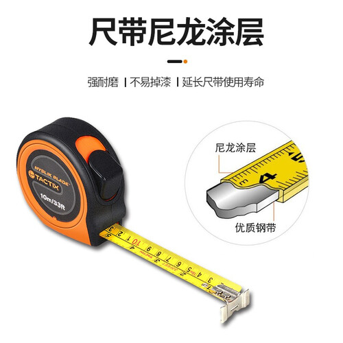 尺带采用尼龙涂层设计,耐磨耐用,可延长使用寿命。再搭配ABS外壳,加上TPR包胶工艺,抗冲击性强,可防止损坏。
