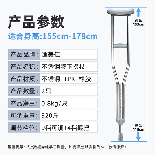 适美佳 不锈钢防滑拐杖