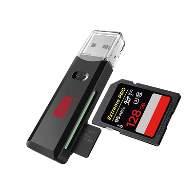 双卡槽设计,大卡小卡都可用,稳定实用且传输速度快。盖帽式设计,可有效保护USB接口,不易受到碰撞和损害,延长使用寿命。