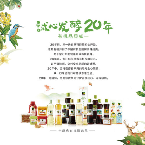 严选核心原产地有机原料,通过国家认证,酱油更加绿色健康。采用全自动压榨设备,保留精华原汁,锁住酱汁营养。