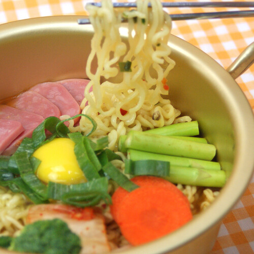 韩国风味的泡面,口感爽滑且Q弹,带来愉快的食用体验。韩国辣白菜汤头,汤汁浓郁且鲜美,面条吃起来美味爽口。