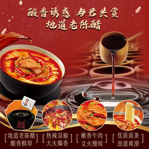 古法酿制的山西老陈醋,味正色浓醇香悠长,清新爽口的酸味配合上等牛骨牛肉熬出来的汤底,再加一点辣,一碗开胃好面由此诞生。