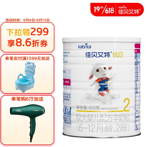 佳贝艾特 2段较大婴儿配方奶粉