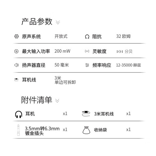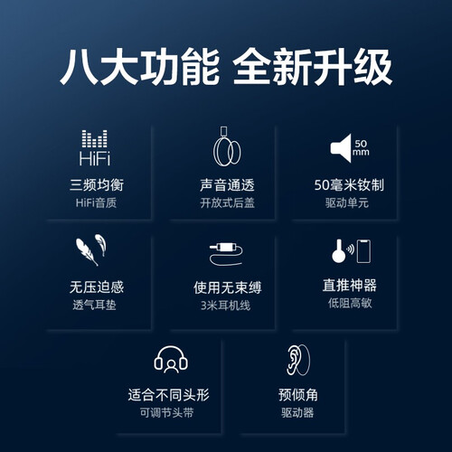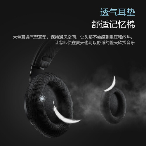 开放式后盖设计,声场宽广,细节表现更细腻。透气型耳垫,快速散热分散压力,佩戴更为舒适。