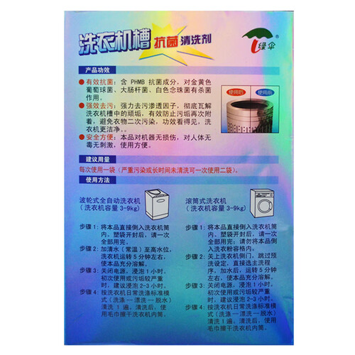 内含去污非离子的表面活性剂成分,可以有效的清洗掉洗衣机槽内的污渍,带来洁净的洗衣机槽;去除异味,保持机内的清新味道。