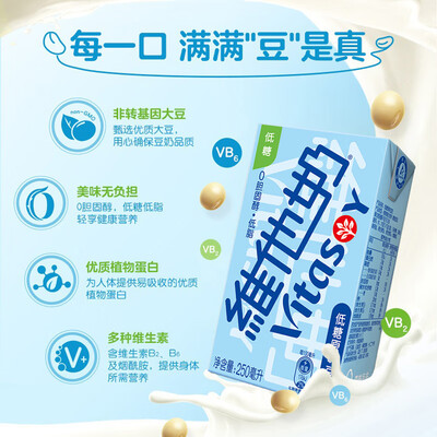 精心挑选非转基因食材,含有不饱和脂肪,带来富含植物蛋白的好豆奶,低糖的设计,让身体无负担。
