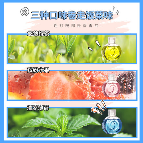拥有三种口味可选,便携小包装,随时随地清新口腔。多效合一的科学配方,带来更多使用可能,解决多重口腔问题。