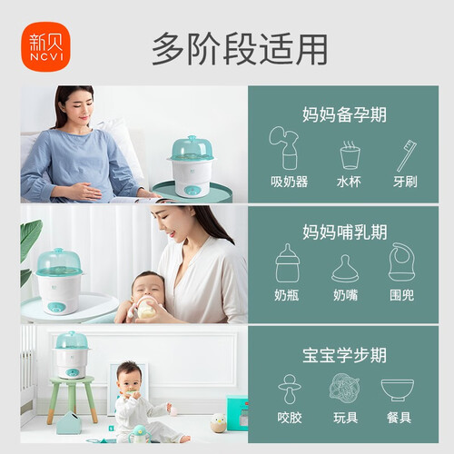 一键式操作模式,使用方便省心。10分钟高温蒸汽消毒,病菌无处可逃。大容量,可同时消毒6只奶瓶。防干烧断电保护,安心使用。
