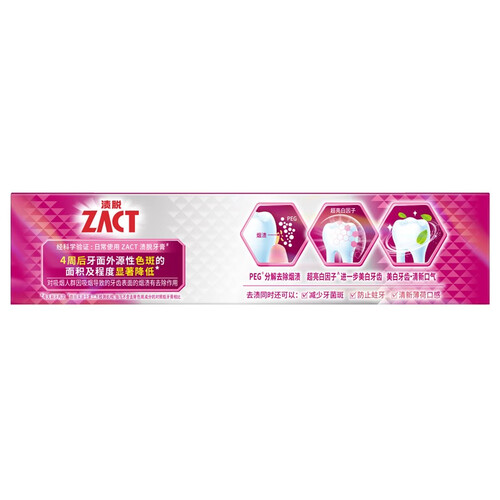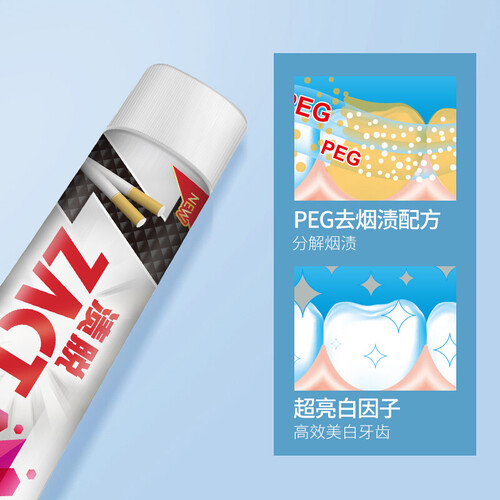 PEG去渍配方,分解及去除焦油和尼古丁残留在牙齿表面所产生的烟渍;清新薄荷香料,清新口气,帮助减少尴尬。