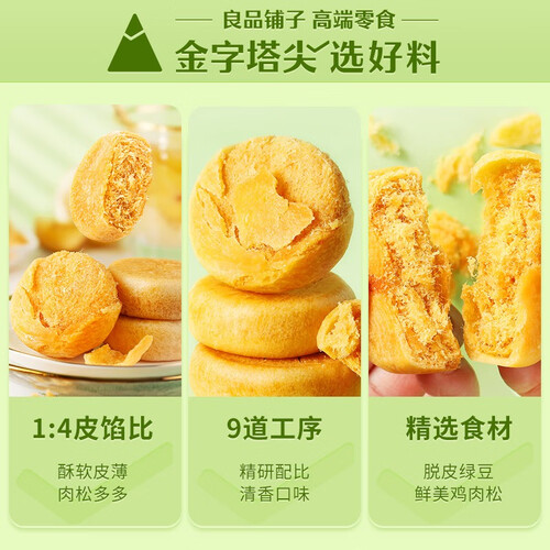 良品铺子肉松饼饼体厚度适中,肉松满满看得见,丝丝入味,尝起来清香不腻,色泽金黄可人,酥软皮薄口口香。